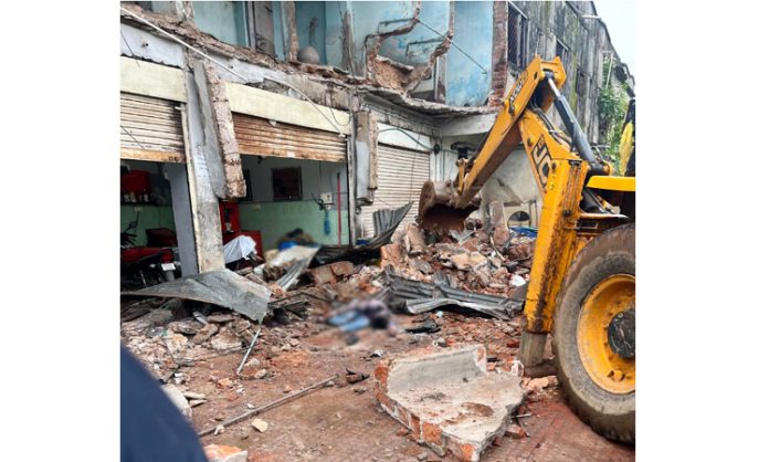 गडचिरोली : जिल्ह्यातील आरमोरी शहरातील भगतसिंग चौकातील हिरो कंपनीच्या दुचाकी शोरूमची इमारत कोसळून तीन कामगारांचा मृत्यू झाला असून, तीनजण गंभीर जखमी झाले आहेत. आकाश बुराडे (२५ वर्ष, रा. निलज, ता. ब्रम्हपुरी, जि. चंद्रपूर), तहसीन शेख (३० वर्ष, रा. वडसा, जि. गडचिरोली), अफसान शेख (३२ वर्ष, रा. वडसा, जि. गडचिरोली) अशी मृतक कामगारांची नावे आहेत. तर दीपक अशोक मेश्राम (२३ वर्ष, रा. आरमोरी, जि. गडचिरोली), विलास कवडू मने (५० वर्ष, रा. आरमोरी, जि. गडचिरोली), सौरभ रवींद्र चौधरी (२५ वर्ष, रा. मेंढकी, ता. ब्रम्हपुरी, जि. चंद्रपूर) हे जखमी झाले आहेत.