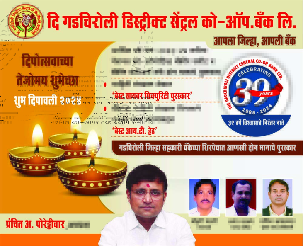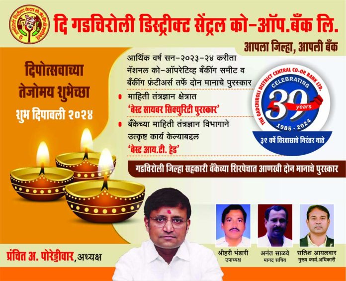 गडचिरोलीमहाराष्ट्रविदर्भ दिपोत्सवाच्या समस्त जनतेला तेजोमय हार्दिक शुभेच्छा…! By Vidarbha Kranti News - November 1, 2024 91 Share FacebookTelegramTwitterWhatsApp