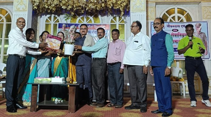 गडचिरोली : पोलिस उपनिरीक्षक (P. S. I.) जीवनदास एस. शेंडे यांचा सेवापूर्ती व सेवानिवृत्ती सत्कार समारंभ शुक्रवार, ८ नोव्हेंबर रोजी प्रसन्ना सेलिब्रेशन हॉल नवेगाव, गडचिरोली येथे भूगोलशास्त्र मित्र मंडळाच्या वतीने आयोजित करण्यात आला होता.