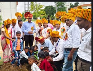 – वृक्षारोपणात मान्यवरांसोबत विद्यार्थ्यांचा सहभाग