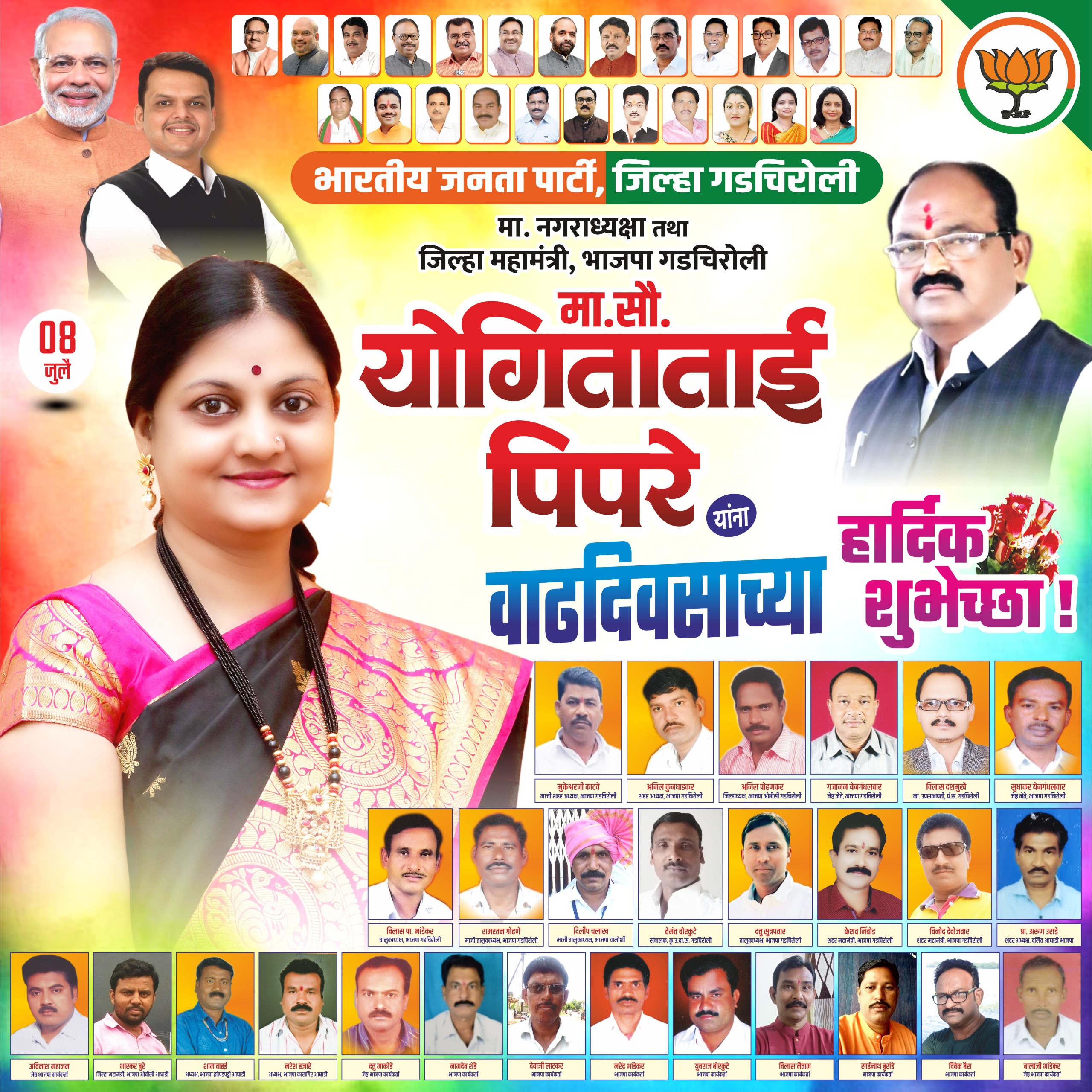 गडचिरोलीमहाराष्ट्रविदर्भ गडचिरोली नगर परिषदेच्या माजी नगराध्यक्ष तथा भाजपा जिल्हा महामंत्री मा. सौ. योगिताताई प्रमोदराव पिपरे यांना वाढदिवसाच्या हार्दिक शुभेच्छा…! By Vidarbha Kranti News - July 8, 2025 76 Share FacebookTelegramTwitterWhatsApp