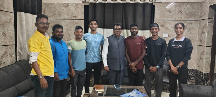 गडचिरोली : जागतिक आदिवासी दिनाचे औचित्य साधून अखिल भारतीय आदिवासी विकास परिषेदेच्या वतीने भव्य मॅरेथॉन स्पर्धेचे आयोजन करण्यात आले. याप्रसंगी मॅरेथॉन स्पर्धेसाठी राष्ट्रीय पातळीचे धावपट्टू सहभागी होण्यासाठी विश्रामगृह गांधी चौक येथे माजी आमदार डॉ. देवरावजी होळी यांची भेट घेतली. सहभागी शेकडो युवक, युवतींची निवास व जेवणाची व्यवस्था करून दिली. त्याबद्दल सहभागी युवकांनी आनंद व्यक्त करत आभार मानले.