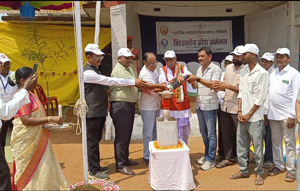 गडचिरोली : एकात्मिक आदिवासी विकास प्रकल्प गडचिरोली अंतर्गत सोडे बिटस्तरीय क्रिडा सम्मेलन दंडकारण्य शैक्षणिक व सांस्कृतिक विकास संशोधन संस्था गडचिरोली व्दारा संचालित अनुदानित माध्यमिक आश्रमशाळा मुरमाडी येथे २३ सप्टेंबर ते २५ सप्टेंबर २०२५ दरम्यान होत आहेत. या बिटस्तरीय क्रीडा स्पर्धेचे उद्घाटन सोहळा २३ सप्टेंबर २०२५ रोजी थाटात पार पडला.